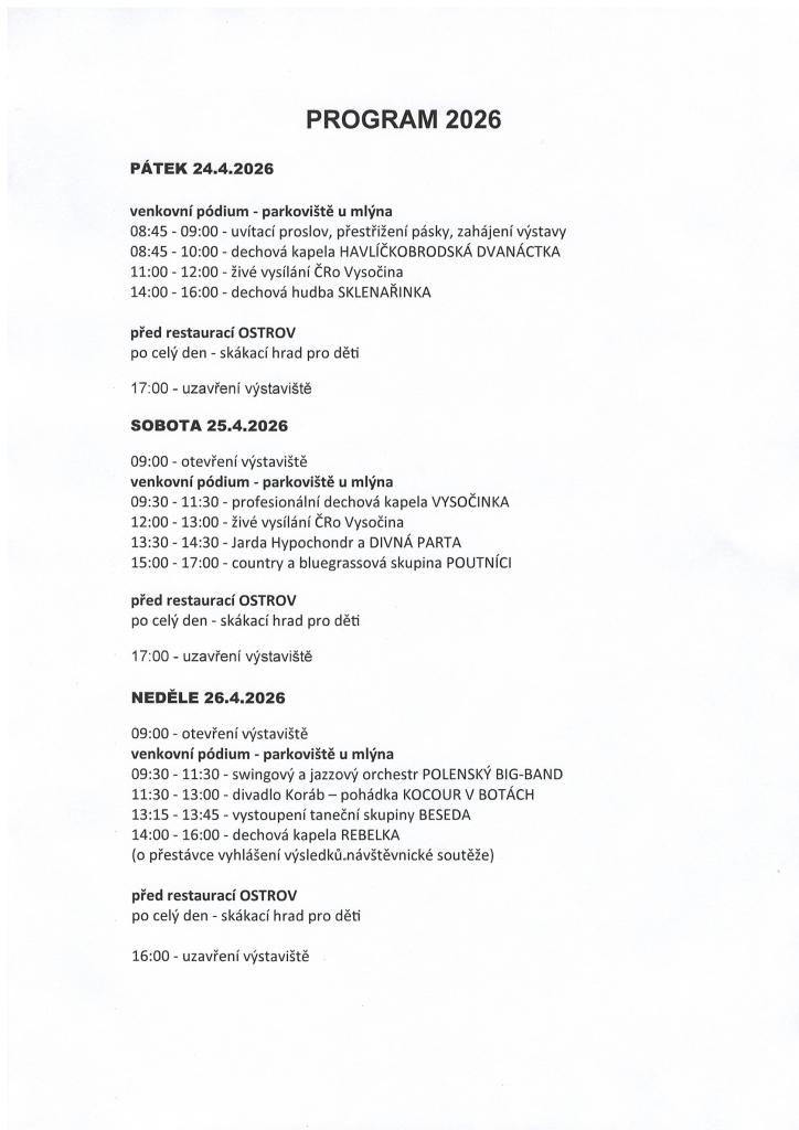 Jaro je tady a s ním i další ročník výstavy ZAHRADA v Havlíčkově Brodě. Tato, na Vysočině ojedinělá, výstava není určená pouze pro zahradníky a zahrádkáře. Ve dnech od 24. do 26. dubna si zde nakoupíte nejen květiny, sadbu, stromky, nářadí na zahradu, ale i doplňkový sortiment jako je keramika, proutěné zboží, dřevěné hračky, koření, potřeby pro domácnost a další. Pořadatel, havlíčkobrodská firma GEONOVA s.r.o., zve i na bohatý kulturní program s možností posezení a občerstvení. Ani letos nebudou chybět návštěvnické soutěže a ocenění každého, který projde jako pětistý branami výstavy. Pro nejmenší návštěvníky bude opět připraven oblíbený skákací hrad.